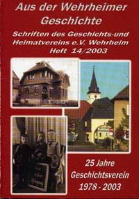 | Aus der Wehrheimer Geschichte Heft 14 - 8,00 € Zum Inhalt: 25 Jahre Geschichtsverein Wehrheim Aus der Chronik Gemeindegebietsreform Landwirtschaft im Wandel der Zeit Vom Stadttorwärterhaus zum Museum Zigarrenfabrikant Philipp Selzer Wehrheim und seine Kerb Porträt eines alten Wehrheimers Wehrheimer Zu- und Spitznamen Lehrer, Schüler, Dorfgeschichten Die Limesschule in Wehrheim Die haaß Flaaschwurst |